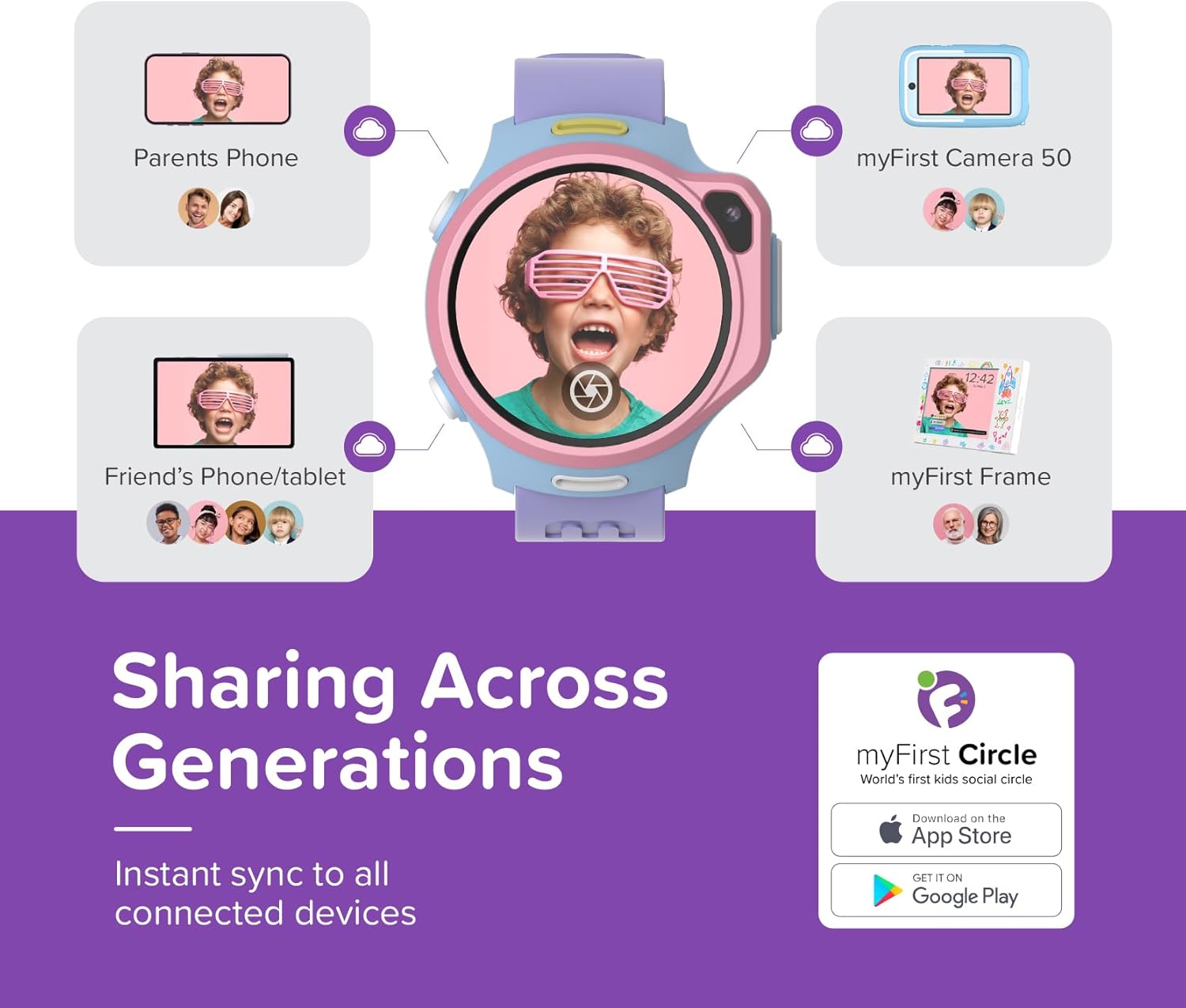myFirst Fone R2 Kids Smartwatch with eSIM Video Calls Messaging Real-Time GPS Tracking SOS Button Safety Alerts School Mode Music Player Ages 5-12, For USA & Canada Gift for Boys & Girls (Acai Purple)