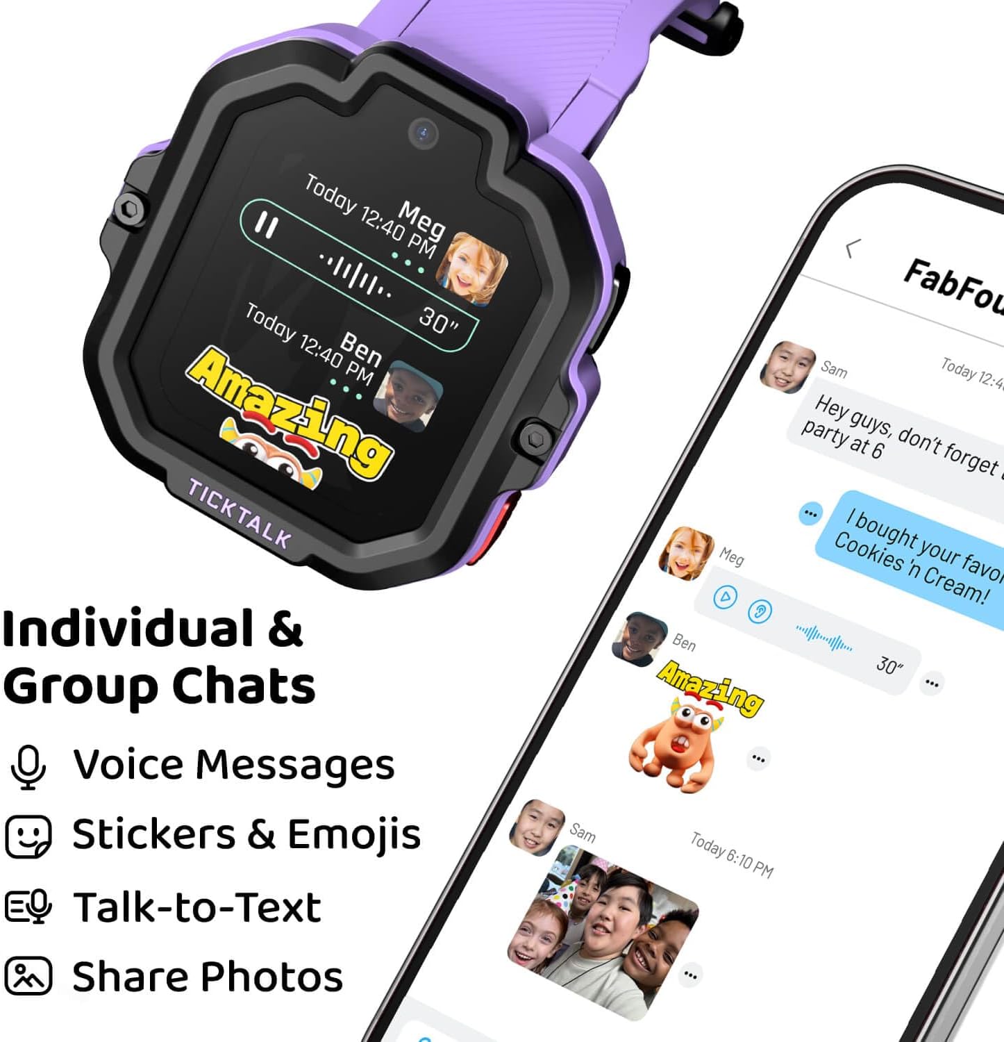 - SECURED MESSAGING: TickTalk 5 delivers the most expansive messaging experience in a kid’s smartwatch. Enjoy seamless Talk-to-Text, quick responses, voice recordings, emojis, GIFs, and group chats—all secured with end-to-end encryption. Stay connected with your family while ensuring safety and privacy.